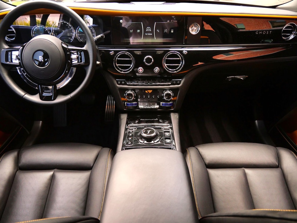 Rolls-Royce Motor Cars Beverly Hills is pleased to present for sale this stunning 2022 Rolls-Royce Ghost as part of our hand-selected pre-owned lineup. This gorgeous example is finished in the Black Diamond exterior paint over a Black & Forge Yellow interior.