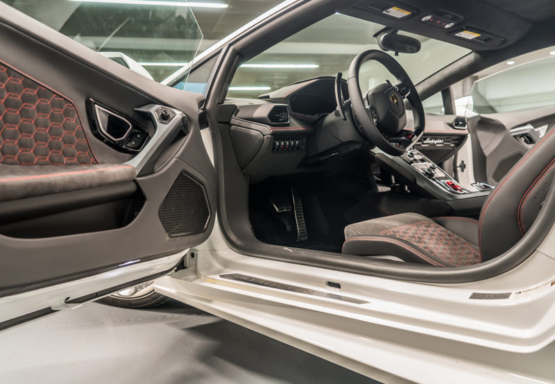 The power of the V10 engine is brought to the road via the new 7-speed dual-clutch transmission “Lamborghini Doppia Frizione” (LDF) and fully electronically controlled four-wheel drive system. The different driving modes of the Huracán can be selected via a driving dynamics selector switch in the steering wheel – from traction-oriented on the road to extreme performance on the race track, with three setups of the dynamics system: STRADA, SPORT and CORSA. The different modes ensure extensive modification in road behavior of the Huracán. In particular they influence the set-ups of several systems, such as the gearbox and engine behavior, the sound, the four-wheel-drive system and electronic stability control. The “Lamborghini Dynamic Steering” variable steering ratio system and magneto-rheologic suspension dampers are both available as options for further customization of the Huracán’s dynamic behavior. They are also calibrated via the three different dynamic set-ups.In this car, every detail in terms of technology and innovation was designed to achieve one, single goal: to make you experience the real fun in driving. Now you can say that form has never followed function so well.