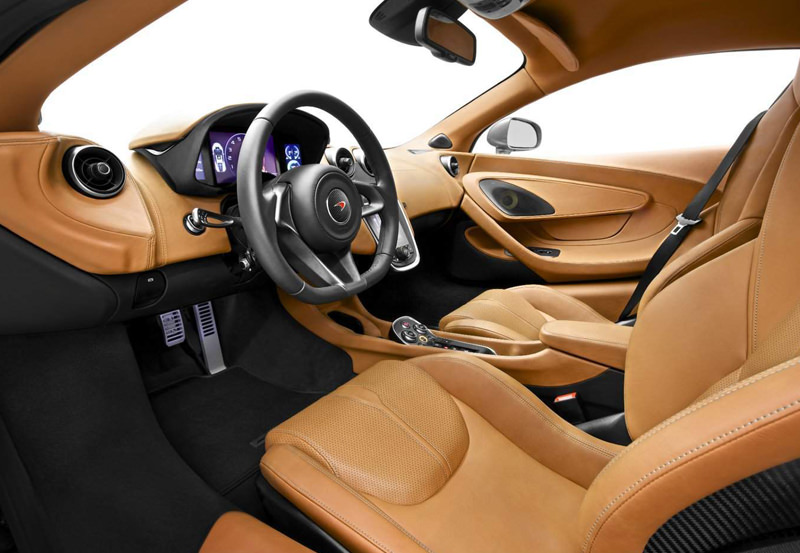 A seven-inch touchscreen offers intuitive control over the McLaren IRIS infotainment system. Standard specification includes satellite navigation, Bluetooth telephone connection and audio streaming, WiFi tethering, voice activation, integrated apps, and DAB or SIRIUS radio, depending on market. IRIS also controls the stereo, climate-control and optional rear-view camera systems, allowing the centre console to be as uncluttered as possible.
