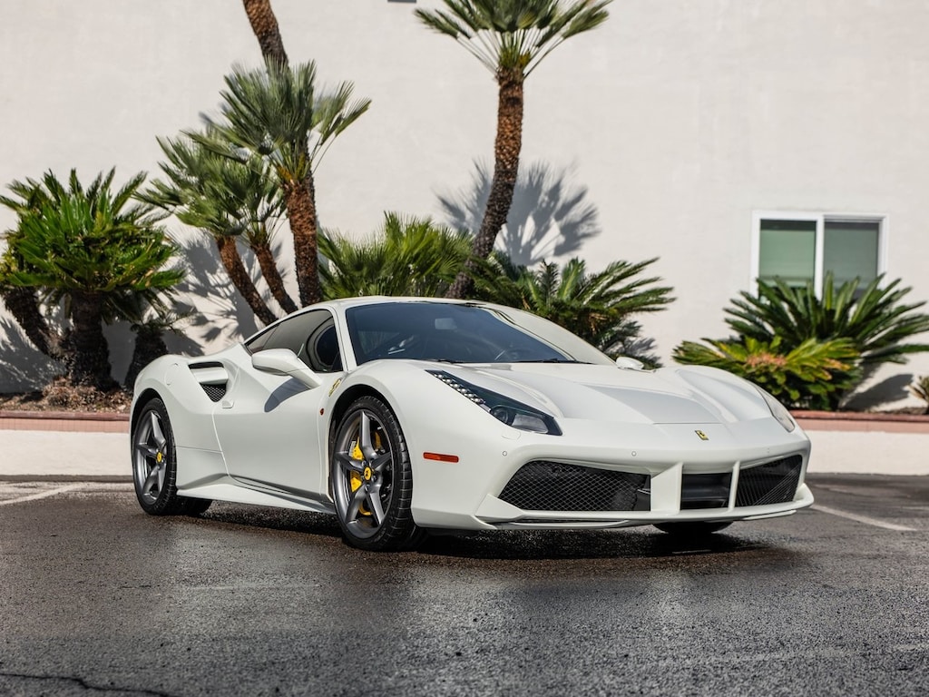 O'Gara Coach San Diego is proud to present for sale this stunning 2017 Ferrari 488 GTB as part of our hand-selected pre-owned lineup. This gorgeous example is finished in the Bianco Avus exterior paint and Nero interior. Other manufacturer options include: 4-Wheel Disc Brakes, 6 Speakers, ABS brakes, Adaptive suspension, Air Conditioning, Alloy wheels, AM/FM radio, Apple CarPlay, Automatic temperature control, Brake assist, Bumpers: body-color, Ceramic disc brakes: front and rear, Compass, Delay-off headlights, Driver door bin, Dual front impact airbags, Dual front side impact airbags, Electronic Stability Control, Four wheel independent suspension, Front anti-roll bar, Front Bucket Seats, Front Center Armrest, Front dual zone A/C, Front reading lights, Fully automatic headlights, Headlight cleaning, Heated door mirrors, Illuminated entry, Leather Seat Trim, Leather steering wheel, Low tire pressure warning, Navigation System, Outside temperature display, Passenger cancellable airbag, Passenger door bin, Power door mirrors, Power steering, Power windows, Radio data system, Radio: AM/FM/MP3/USB/6-Disc CD w/30GB Hard Disc Drive, Rain sensing wipers, Rear anti-roll bar, Rear fog lights, Rear window defroster, Remote keyless entry, Security system, Speed control, Speed-sensing steering, Spoiler, Sport Bucket Seats, Sport steering wheel, Steering wheel mounted audio controls, Tachometer, Telescoping steering wheel, Tilt steering wheel, Traction control, Trip computer, Variably intermittent wipers, Voltmeter, and Wheels: 20" x 9" Fr & 20" x 11" Rr Alloy.